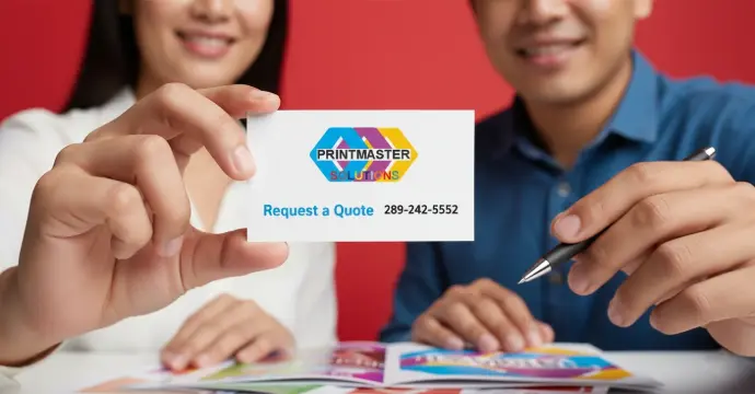 Requesting a quote via the request for quote or calling Print Master Solutions at 289-242-5552 our helpful and experienced staff will be available in person to answer any questions and handle all your printing needs.
